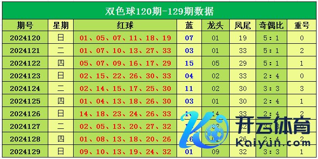 双色球第2024129开奖奖号:红球09、10、13、19、24、32,蓝球01。龙头09,凤尾32,奇偶比3:3,开出1枚重号。