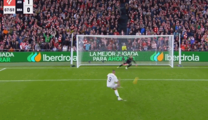 第67分钟,罗德里戈定位球传中,吕迪格头球攻门击中横梁,不外被阿吉雷扎巴拉击倒在地,裁判判罚点球。