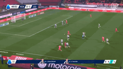 第70分钟,乌迪内斯再次得到最初,接埃克勒卡姆传球射门告成。蒙扎1-2乌迪内斯。