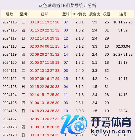 连号分析:最近15期中有9期开出连号,上期开出1组连号09,10,本期推测开出连号29,30。
