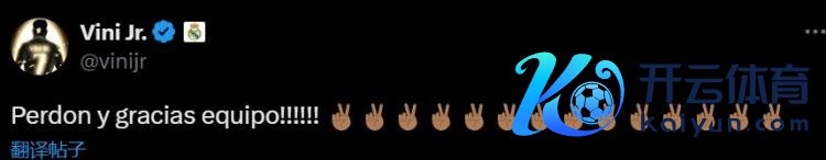 直播吧1月4日讯 在皇马2-1客场逆转打败瓦伦西亚后,被红牌罚下的维尼修斯更新了酬酢媒体。