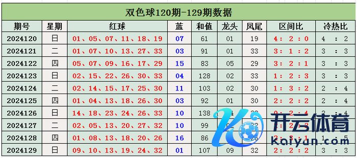 双色球第2024129开奖奖号:红球09、10、13、19、24、32,蓝球01。和值107,龙头09,凤尾32,区间比2:2:2,冷热比3:3。蓝球开出少许号码01。