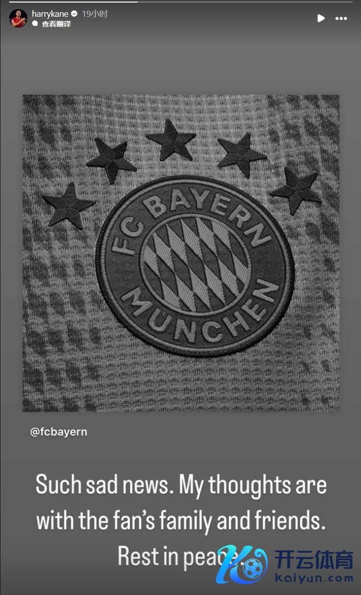 凯恩转发了拜仁的动态体育录像/图片,并写说念:“这个音信太令东说念主伤心,我与这位球迷的家东说念主和一又友同在,向他们致以慰问,安息吧。”