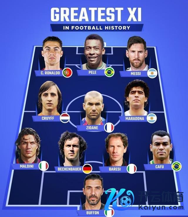 终末再来看锋线,足坛历史上先锋不错说是巨星分娩率最高的限度,基本上三个位置竞争都特别热烈。而在这其中,中锋位置给到了巴西老球王贝利。贝利看成一代球王,其作事生活不错说是海潮壮阔。既有豪华的进球数据,同期也有拿得手软的冠军奖杯。他那堪比足球化身的柬帖效应足以确保他投入这套最好声势,这小数不移至理。此外,左边锋给到了葡萄牙巨星C罗。5座金球奖,5座欧冠,同期还有足坛历史第一弓手王的头衔。这些都是C罗作事生活最大的倚恃。在左边锋这个位置上,当然是莫得哪位巨星好像挤掉C罗,入选也就显得振振有词。