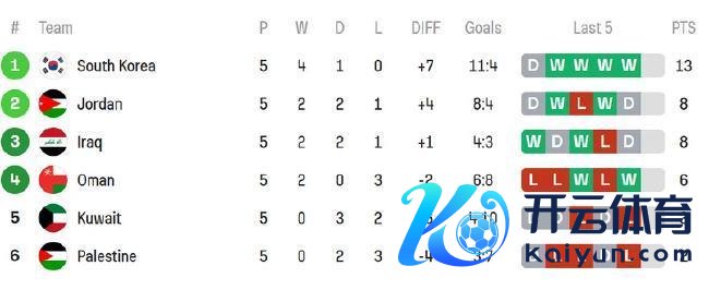 世初赛亚洲区18强B组 韩国一骑绝尘朝上约旦5分北京技术11月15日体育赛事直播,2026全国杯预选赛亚洲区预选赛18强赛阶段,B组的战火在第五轮浓烈烽火后暂时平息。